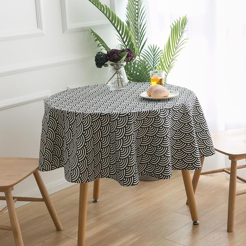 Round/Rectangle Tablecloth With Plaid Geometry Polyester Cotton Dust-Proof Washable Table Cover For Coffee Tea Dining Decoration