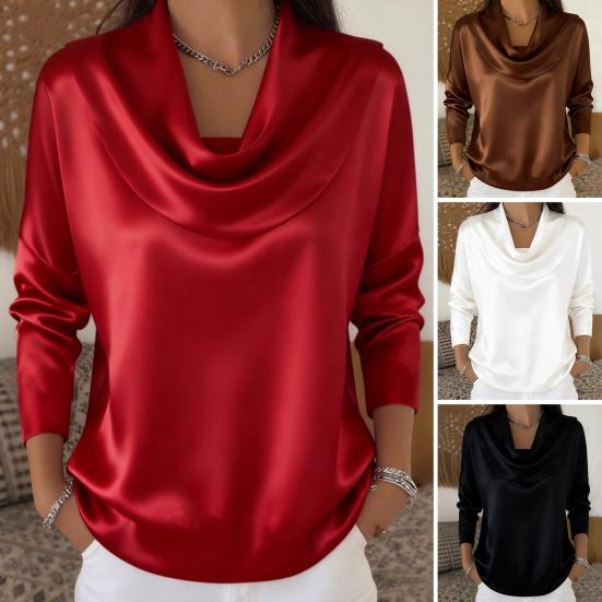Cămașa de damă este confecționată din poliester de înaltă calitate, oferind respirabilitate și o senzație moale, prietenoasă cu pielea, pentru confort pe tot parcursul zilei.. Prezentând un guler unic satinat în stil leagăn și mâneci lungi, rulabile, combină stilul de navetă cu versatilitatea la modă..