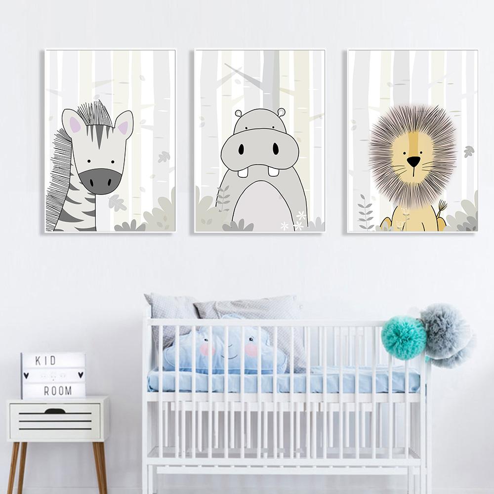 Hippo Zebra Lion Woodland Animal Print Baby Nursery Art Canvas Poster Nordic Wall Art Paintings Boy Kids Room Decorative Picture No Frame