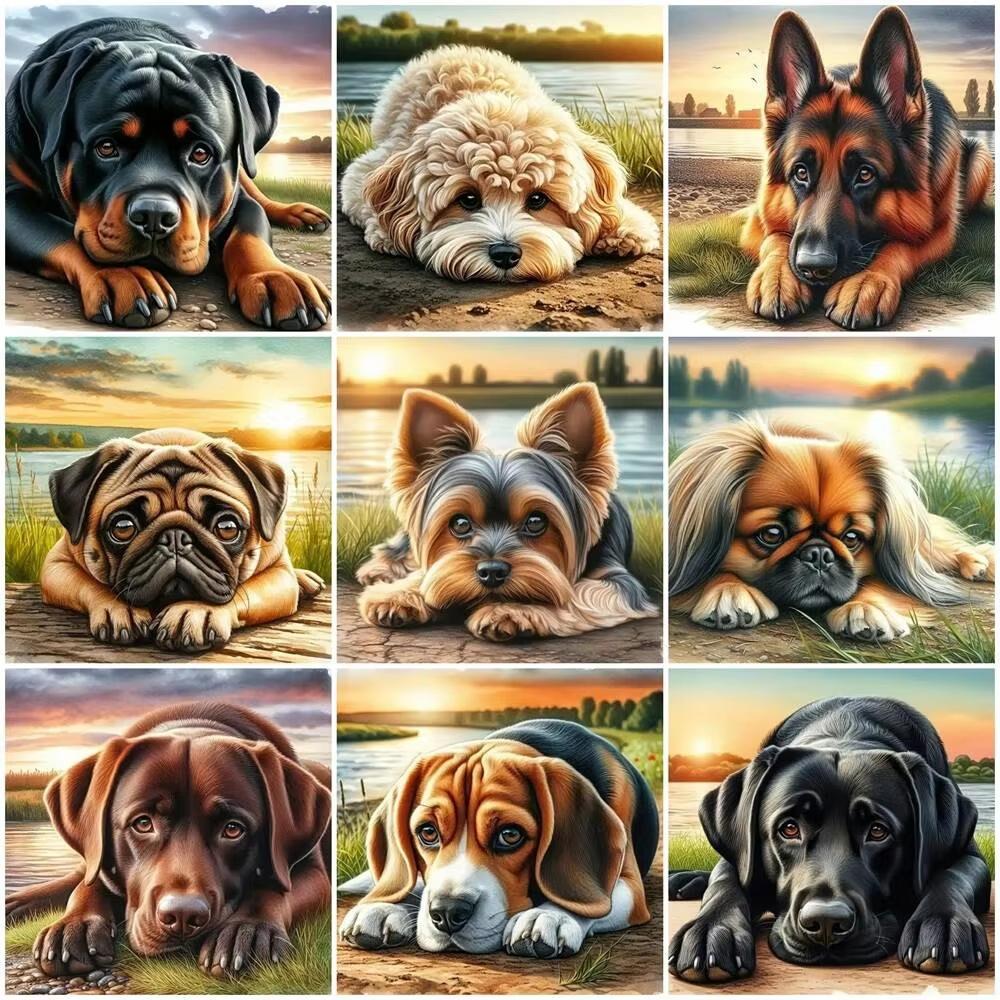 5D Diamond Painting Dog Cartoon Mosaic Animal Lake River Full Drill Embroidery Puppy DIY Crafts Kit Adult Room Decor