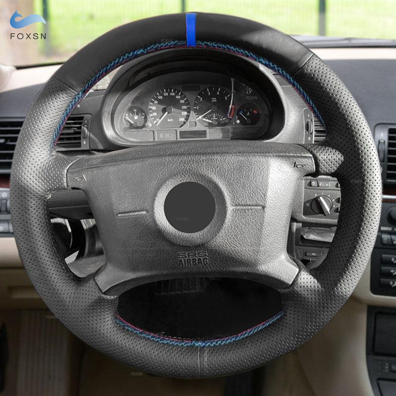 Pentru BMW Seria 3 5 E36 E46 E39 Pentru X3 E83 X5 E53 Decorație interioară pentru capacul volanului mașinii Piele neagră-linie albastră roșie cu bandă albastră