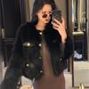 Women's Button Down Long Sleeve Flocked Pockets Crew Neck Jacket Is an Elegant Casual Top