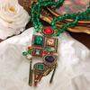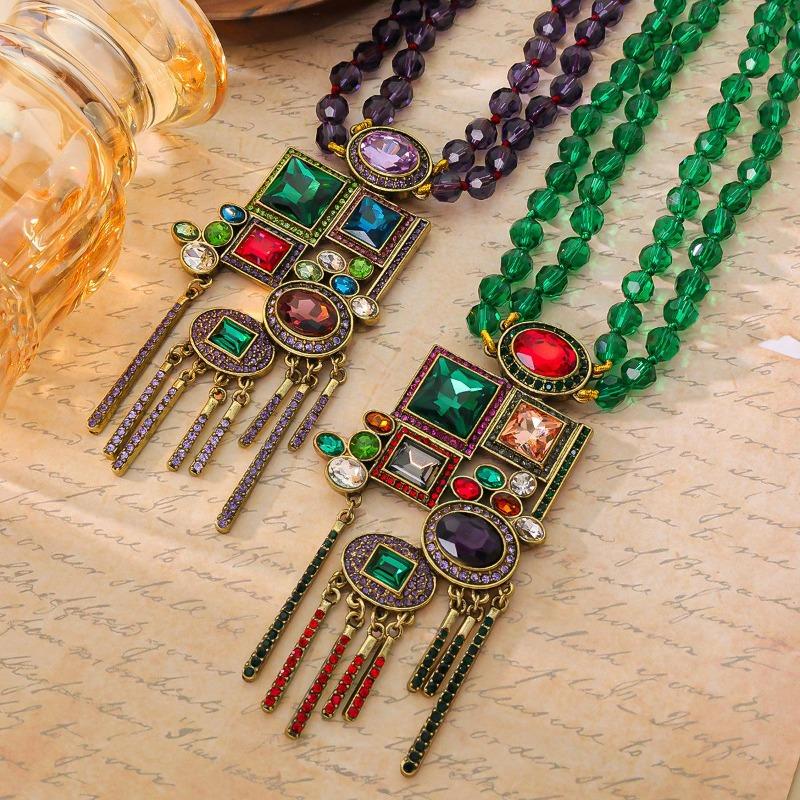 Qingdao Medieval Vintage Heavy Industry Geometric Elements Fringed Pendant Inlaid With Gemstone Round Bead Necklace
