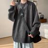 American-Style Lazy Round-Neck Sweater for Men, Winter Trendy Vintage Couple Knitwear, Retro Solid Color Pullover