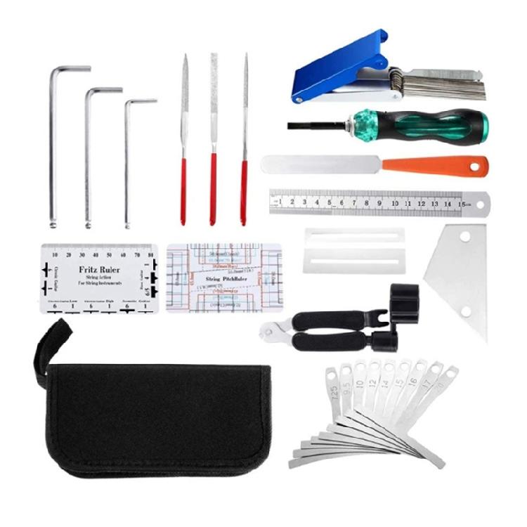 25Pcs Guitar Repairing Tools Setup Kits Professional Maintenance Tool with Ruler Gauge Measuring Tool Wrench Files
