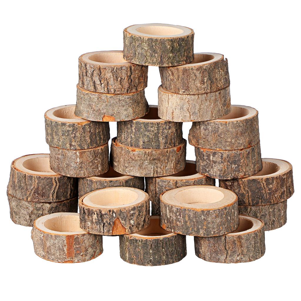 24Pcs Wood Holders Natural Birch Stump Tealight Holder Set for Rustic Centerpieces Home Decor Thanksgiving Christmas