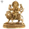Pure Brass Idol Of Maa Durga Sherawali For Home Decor In Gold Color - 9 Inch