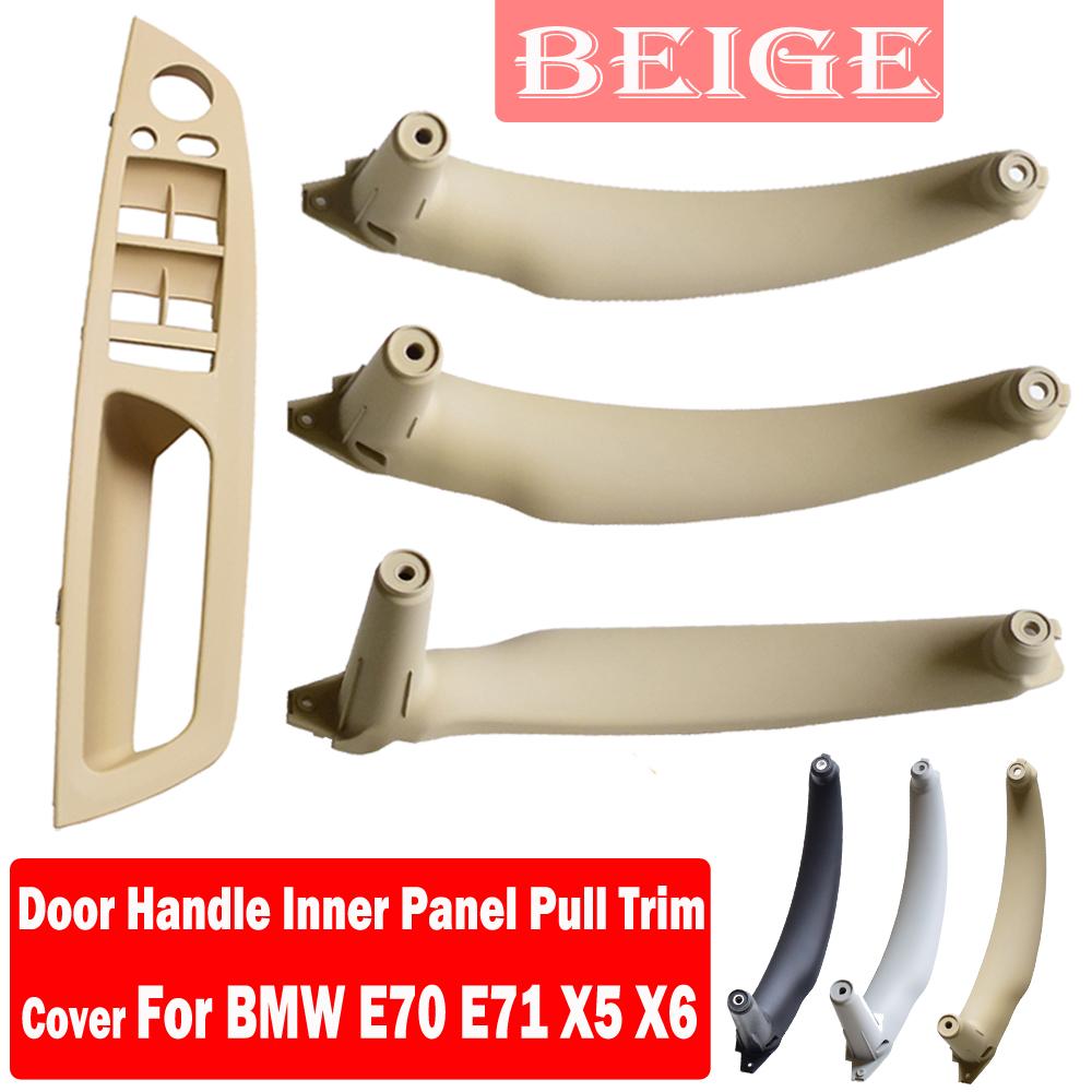 Beige Genuine Leather Car Front Rear / Left Right Interior Door Handle Inner Panel Pull Trim Cover For BMW E70 E71 X5 X6 07-13