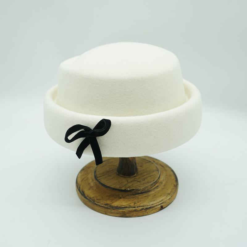 White Elegant Bow Curled Wool Woolen Top Hat Female Autumn And Winter Warm Japanese Felt Cute Versatile Socialite