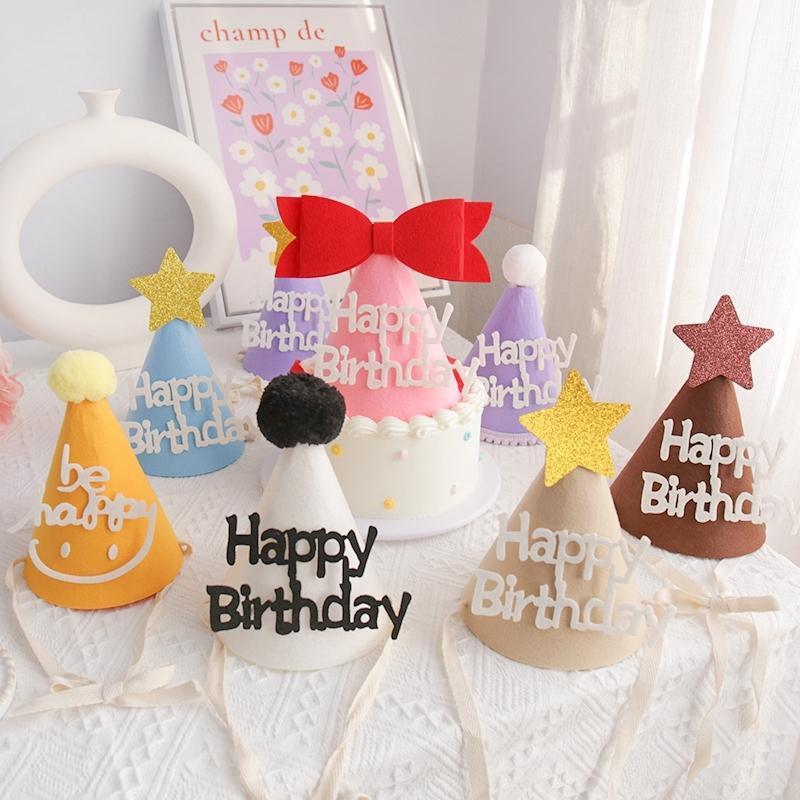 Cute Happy Birthday Hat Felt Cone Hats DIY Birthday Cap Celebration Decor Birthday Party Supplies Photo Props for Adult Kids
