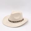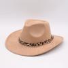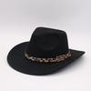 New Leopard Print Belt Hemming Top Hat Jazz Hat Retro Black Woolen Jazz Hat Flat Brim Big Eaves Hat