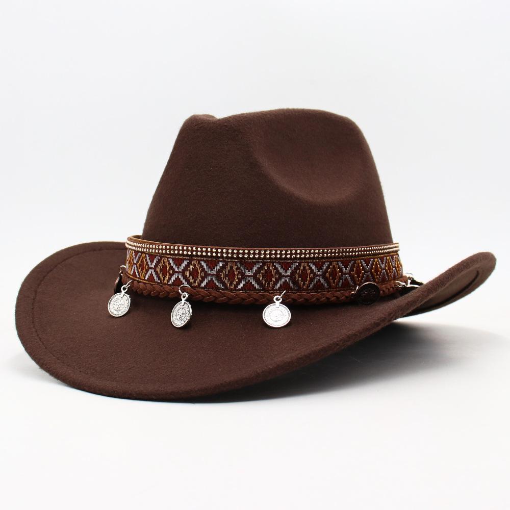 Children'S Tibetan Ethnic Style Pendant, Cowboy Hat, European, American Autumn And Winter Jazz Top Hat, Fashion Stage Concave Shape Woolen Felt