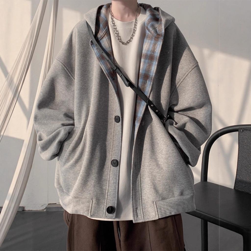 A set of teenage men's clothing is matched with a ruffian handsome splicing hooded sweater, and the men's trend is loose.