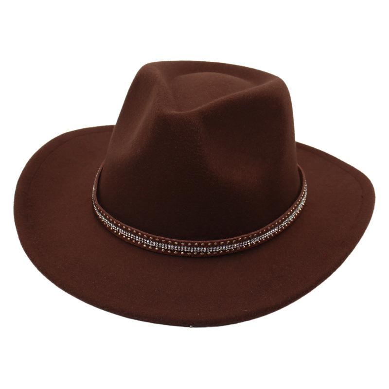 Wide Brim American Style Top Hat Western Cowboy Hat Jackson Jazz Hat Rivet Felt Hat Tibetan Style Woolen Hat Men And Women