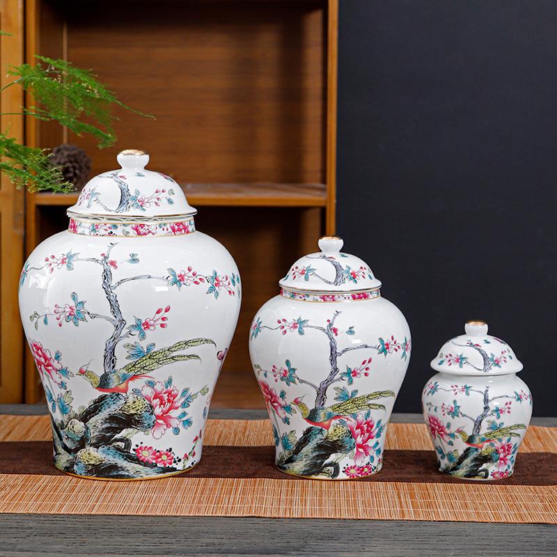 Ceramic Tea Jar Flower Bird General Jar Room Decoration Vase Home Candy Dried Fruit Medicinal Materials Storage Bottle with Lid