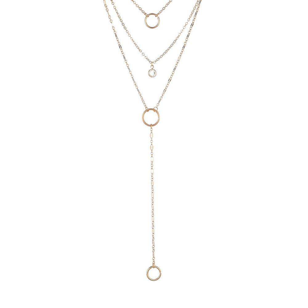 Simple round iron ring hemming diamond pendant necklace multi-layer chain neck chain collarbone chain accessories