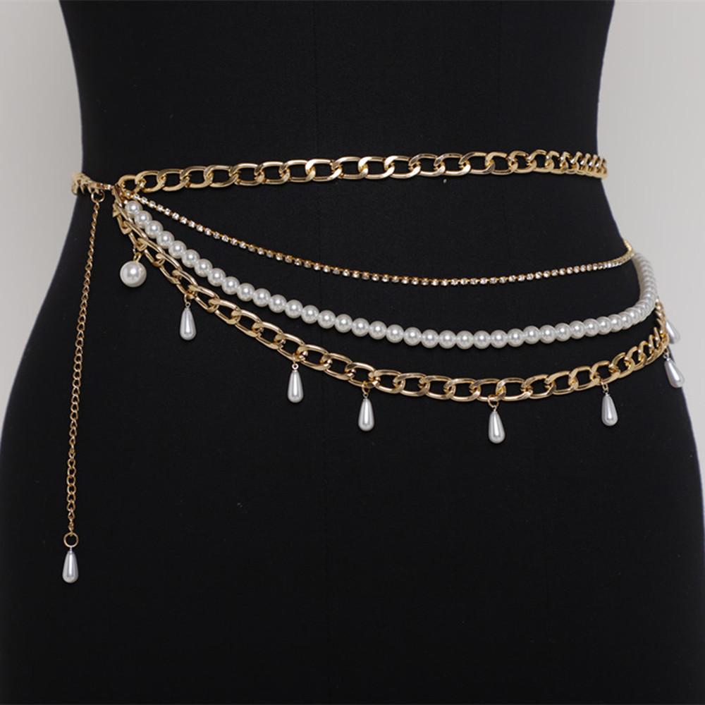 New metal chain imitation pearl multi-layer body chain, temperament versatile claw diamond waist chain women
