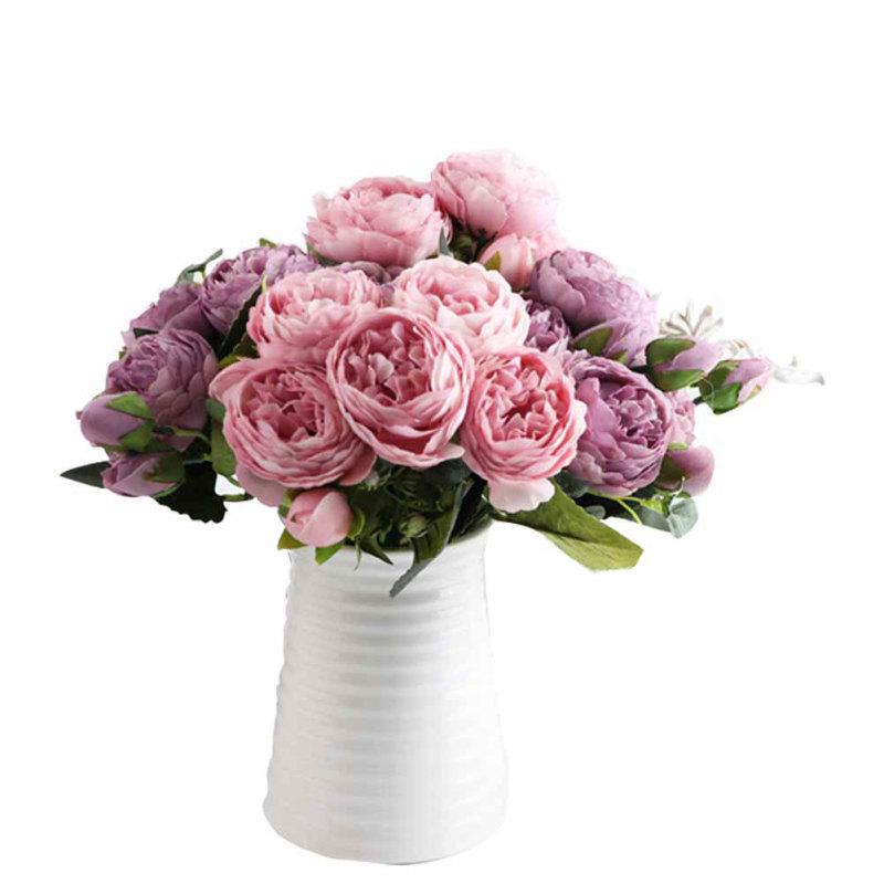 5 Heads Artificial Rose Fake Flower Bouquet for Home Wedding Decoration