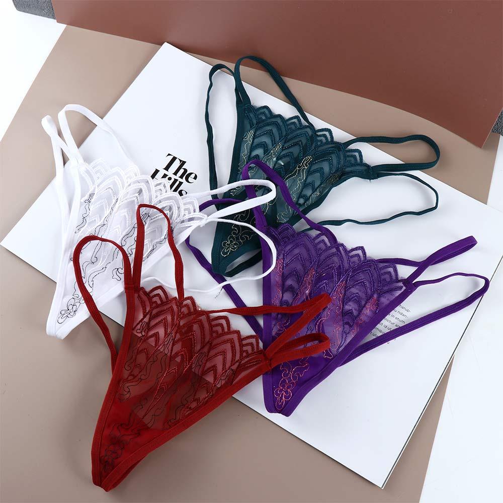 Sexy Underwear Flower Pearl Cross Belt Embroidered T Panties Briefs Lace G-String Women's Thong