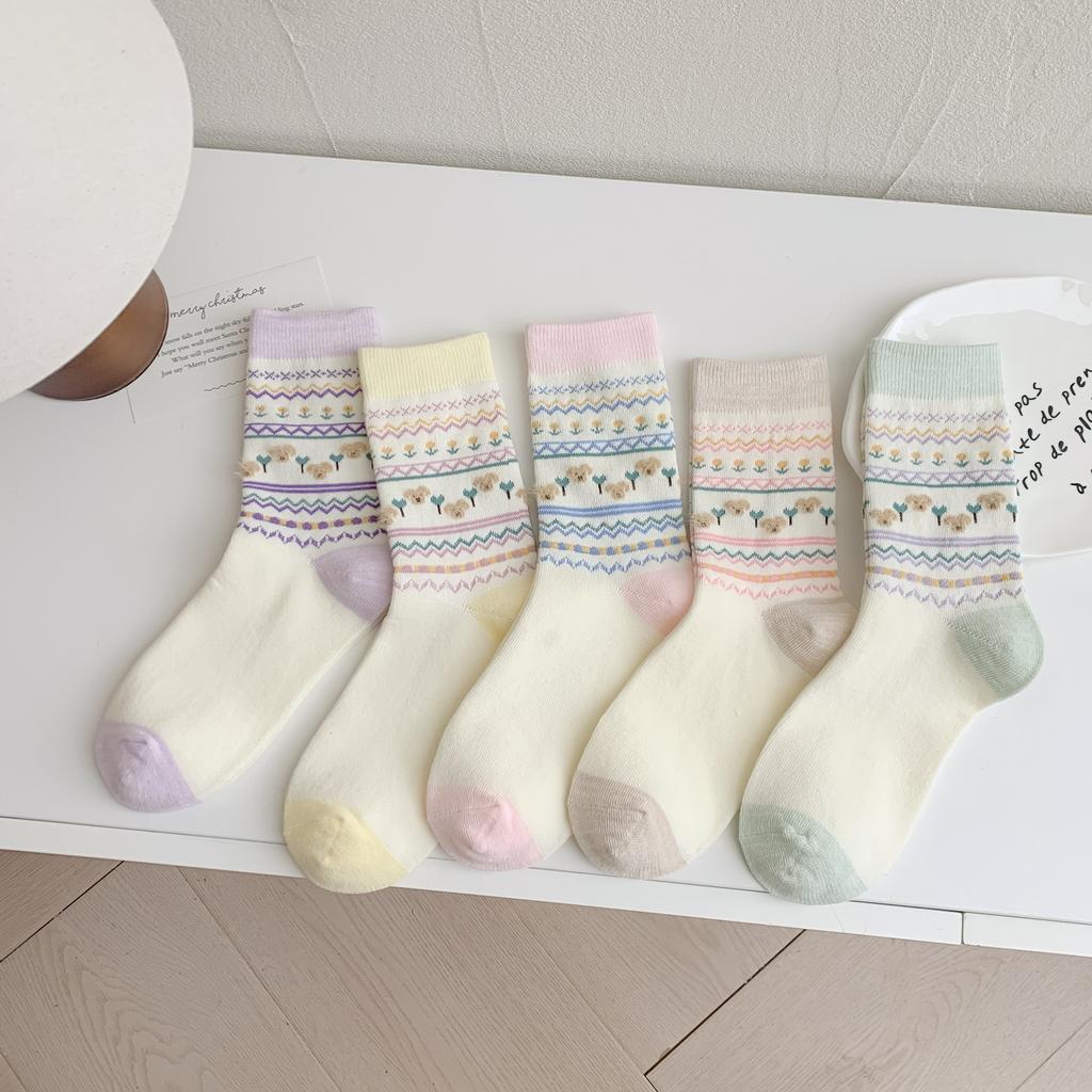Candy-Colored Socks For Girls, Gentle And Sweet Tube Socks In The Wind, Sweat-Absorbing And Breathable, Simple Commuter Cotton Socks