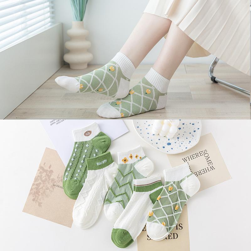 Socks Women'S Summer, Cotton Breathable Stripes, Boat Socks Women'S Double-Needle Invisible Socks