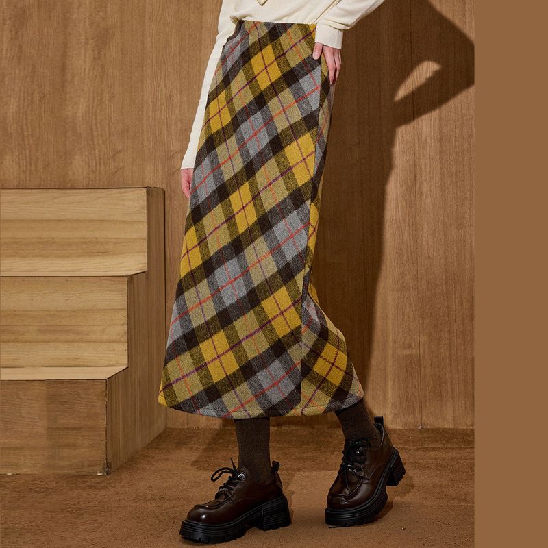 Coolhut American Retro High-Waisted Slimming A-Line Woolen Plaid Warm Casual New Winter Skirt