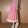 Coolhut2025 Summer Asymmetrical Lace Patchwork Plaid Skirt Pleated High-Waisted Umbrella Skirt