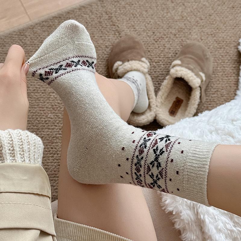 Socks Medium Tube Socks Season Warm Wool Socks Piled Thickened Stockings Pastoral Stacking Socks Women