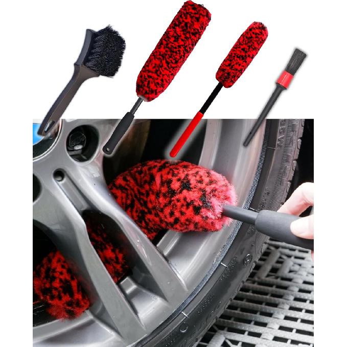 Professional 4 Pack Long Handle Wheel Brush Kit For Cleaning Wheel And Tire- 2X Soft Wheel Cleaning Brush, Detailing Brush And Stiff Tire Brush,