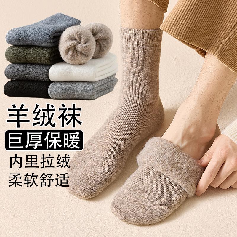 Cashmere Socks Men'S Medium Tube Socks Keep Warm In Season, Super Thick Fleece Wool Socks, Thickened Deodorant Men'S Socks In Winter