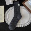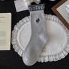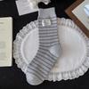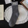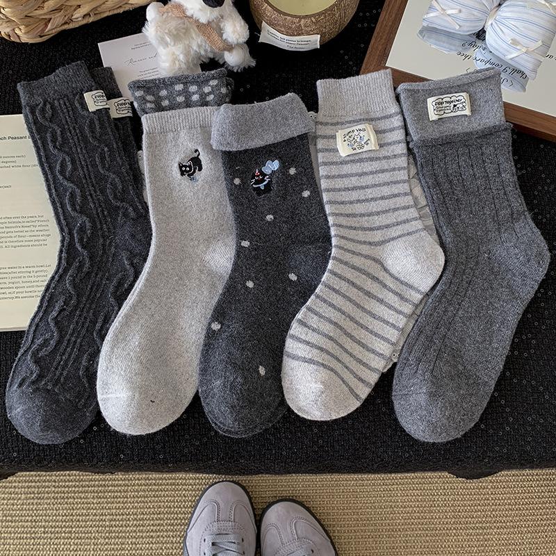 Gray Wool Socks Children'S Season Warm Medium Tube Socks Cute Cartoon Embroidered Cat Striped Cloth Label Stacking Socks
