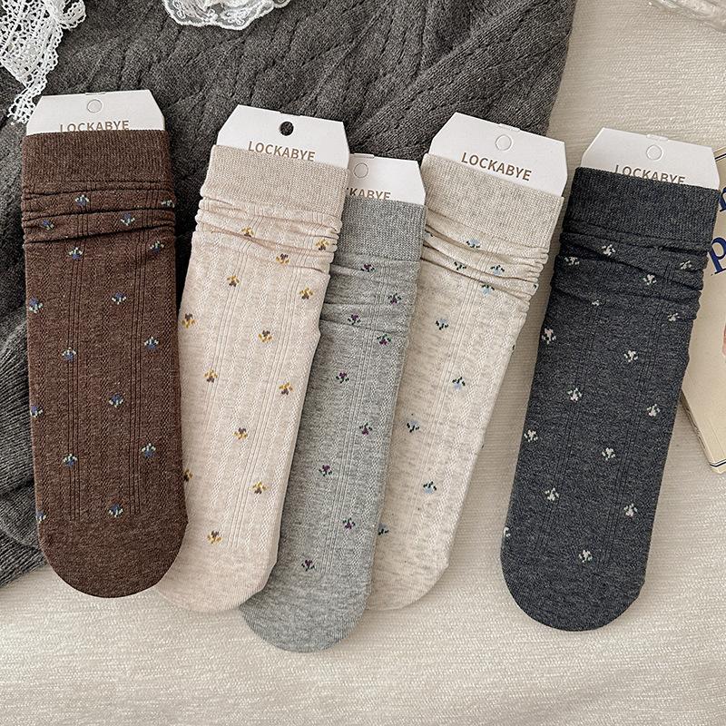 Socks Pure Cotton Tube Socks Season Cute Sweet Little Floral Versatile Cotton Boneless Pile Socks Women