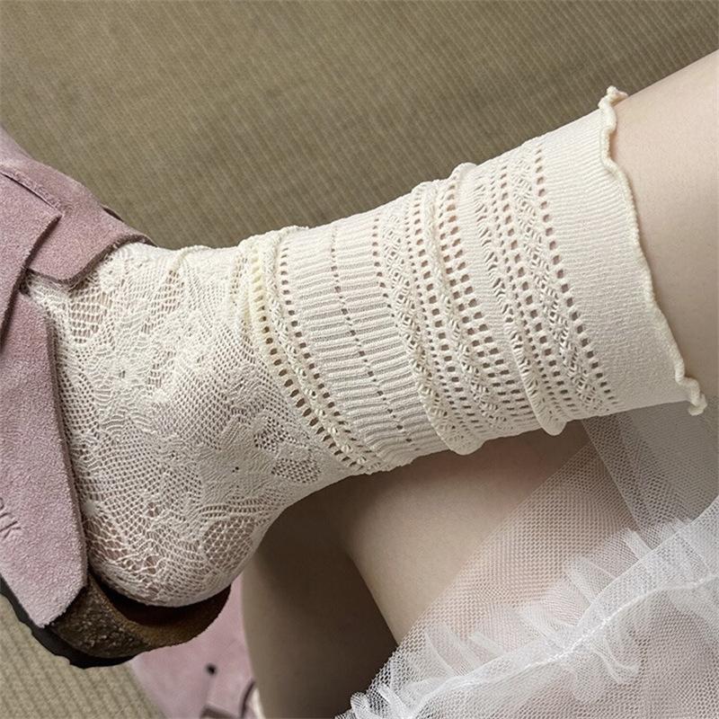 Hollow Lace Socks Women'S Medium Tube Socks Summer Thin Ballet Style Summer Stacking Socks With Small Leather Shoes