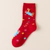 Gift Box Red Socks Pure Cotton Medium Tube Socks Season Year Of The Horse Big Red Cute Cartoon Stockings Women
