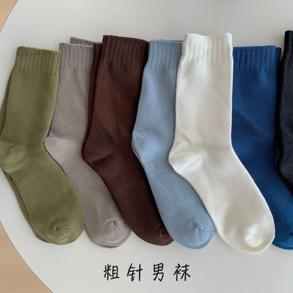 Men'S Season Double-Needle Thick Thread Socks Thickened Warm Stockings Solid Color Casual Business Style Socks