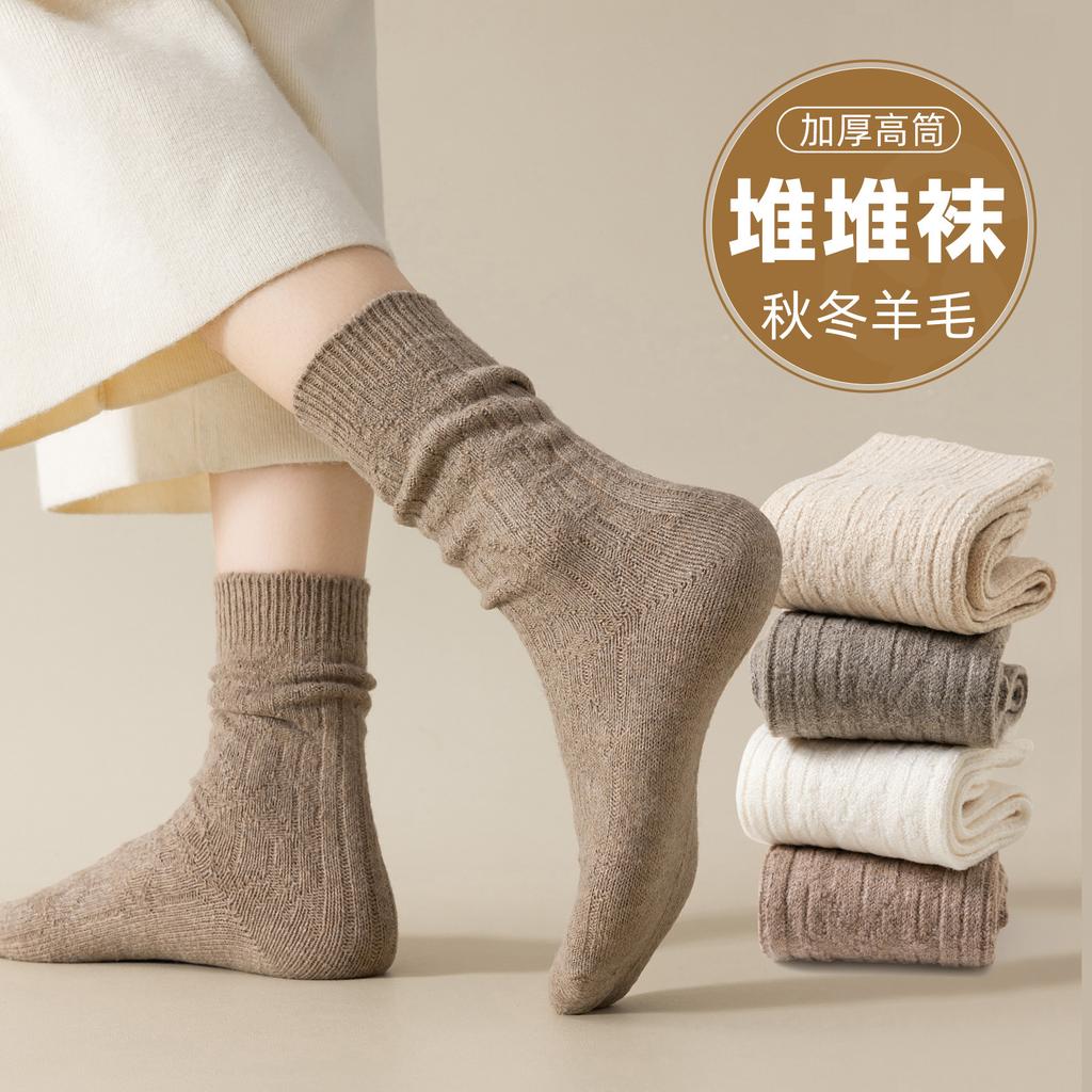 Socks, Wool Socks, Solid Color, Plus Fleece Socks, Double Needles, Coarse Needles, Soft Glutinous Retro Warm Cashmere Piles, Socks