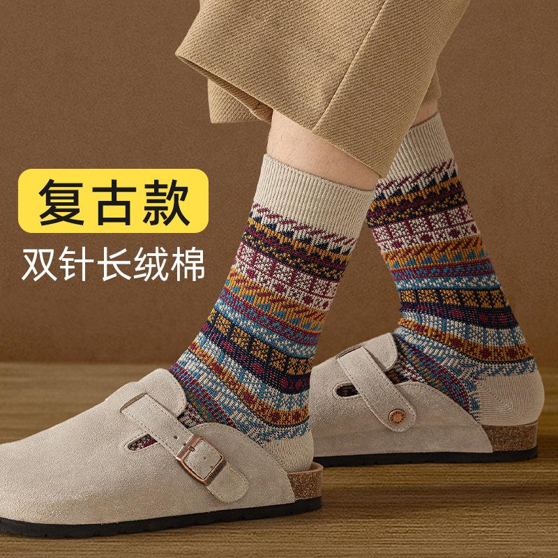 Retro Socks Men'S Ethnic Style Double-Way Double-Needle Birkenstocks Medium Tube Socks Trend Combed Cotton Sports Socks