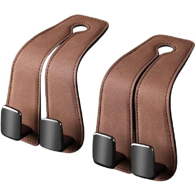 【Suede Headrest Hook】The Car Seat Back Double Hook - Suede hooks fit perfectly with car seats, for storing groceries, clothes, handbags, hats, etc.,turning the headrests into storage space, saving space for storing sundries, handbags, hats, etc., leaving passengers with rear space. Keep your car organized and clutter-free.