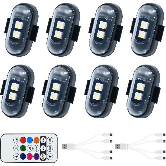 【8 Colors & 10 Modes】Our anti-collision light provides 8 vibrant colors (white, red, green, blue, yellow, purple, pink, ice blue), 10 flashing modes: pilot flash, clap flash, quick flash, flash, blinking and other ten modes. You can remotely control different colors & modes as required.
