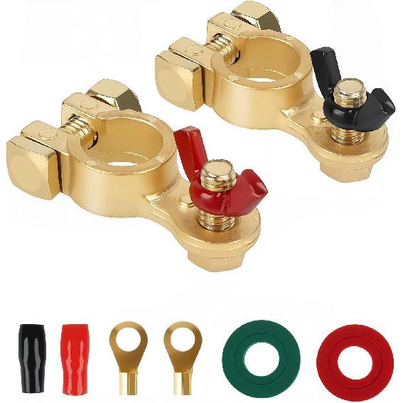 SINGARO Car Battery Terminal Connector, Pure Copper Cable End Top Post Clip Positive And Negative Pole, Applicable To Automobile, Truck, RV And Yacht