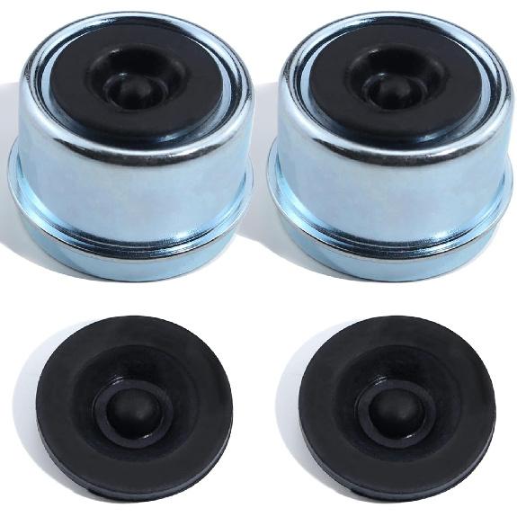 2Pcs Trailer Axle Dust Cap Cup Grease Cover 1.98" Hub With Extra 2 Rubber Plugs,Trailer Axle Wheel Hub And Bearing Dust Cap For Most 2000 To 3500
