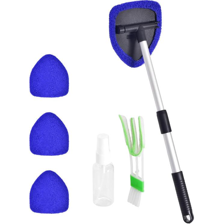 Windshield Cleaner, Car Windshield Cleaning Tool With 3 Reusable And Washable Microfiber Pads And Extendable Handle Microfiber Car Window Cleaner