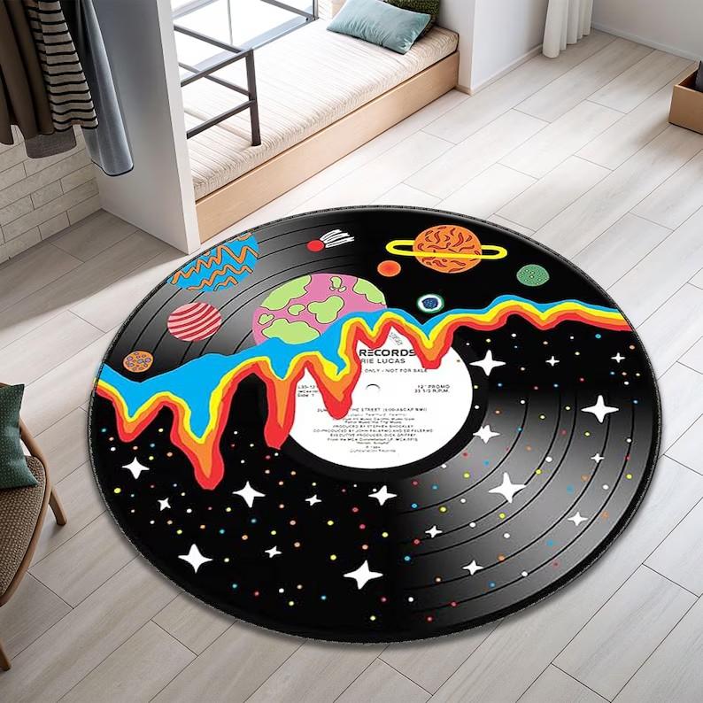 Round Carpet Vinyl Record CD Shaped Carpet Black and White Color Carpet Simple and Versatile Carpet for Music Enthusiasts