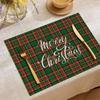 Christmas Linen Placemat Green Checkered Placemat Dining Table Utensil Heat-resistant Heat-insulating Mat Furniture Decoration