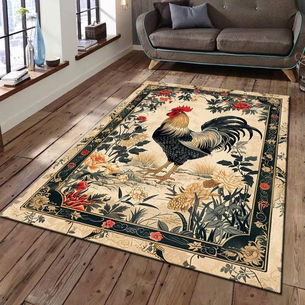 Vintage Rooster Floral Area Rug Collection Retro Farmhouse Style Pattern Floor Mat For Living Room Country Home Decor