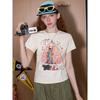Coolhut Tulip Print Casual Loose Pink Sweet Girly Style 2025 Summer Women's Short-Sleeved T-Shirt
