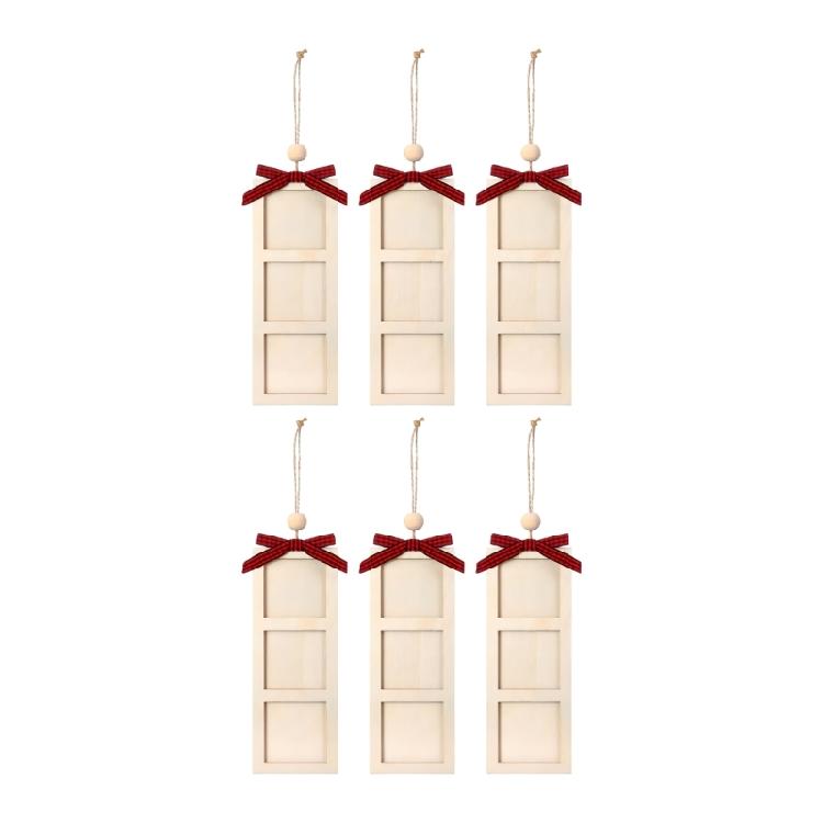 Wooden Picture Frames Christmas Tree Hanging Ornaments 6Pcs Memory Plaids Photo Strips with Bowknot For Festives Space