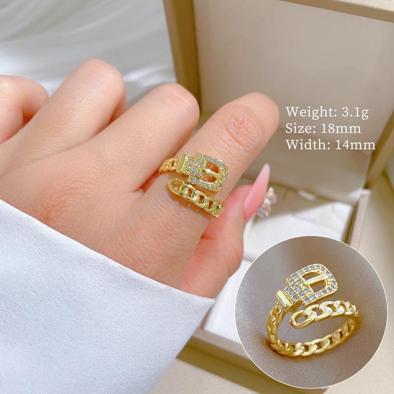 Real Gold Chain Belt Full Diamond Ring Opening Adjustable Simple Jewelry Japanese Ring Couple Ring