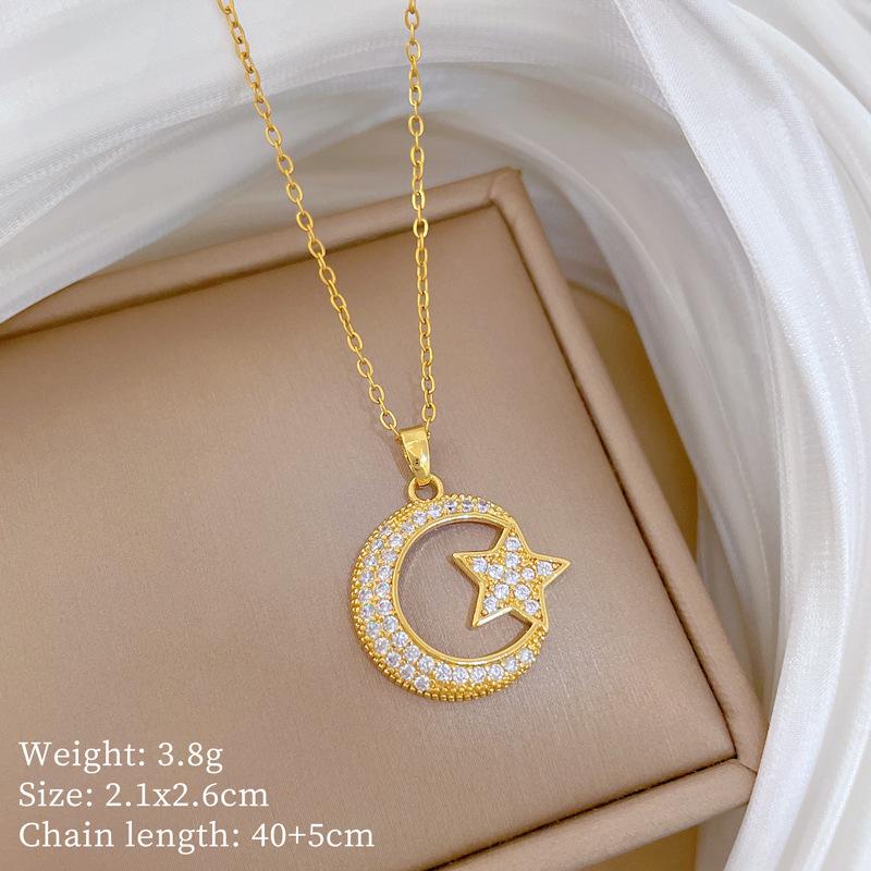Titanium Steel, Star Moon Zircon Light Luxury Temperament Gorgeous Full Diamond Necklace Female Versatile Collarbone Chain Titanium Steel Chain