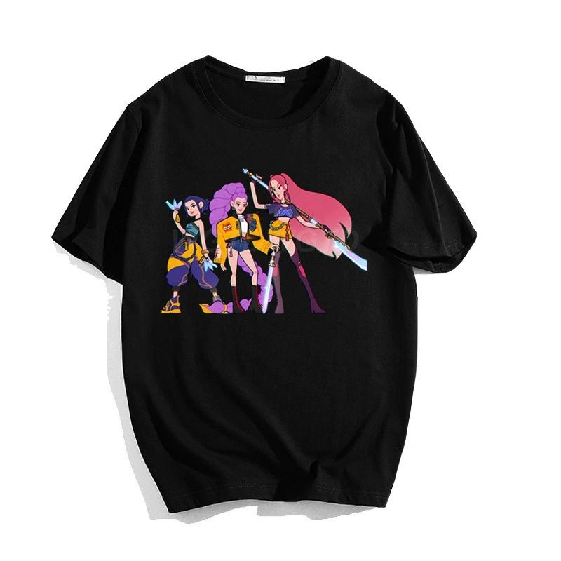 KPop Demon Hunters Women's T-shirt Korean Fashion Casual Round-neck Top Movie Cartoon Girl Boy Tshirt Kid Tees